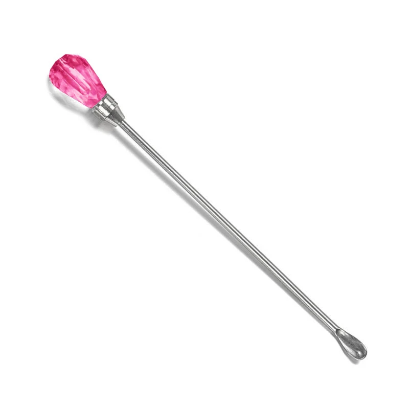 Praktyczna w użyciu szpatułka wykonana ze stali nierdzewnej, łatwa do czyszczenia. Z jednej strony posiada końcówkę na kształt łyżeczki, z drugiej strony stylowo zakończona ozdobą imitującą kamień szlachetny. Narzędzie rekomendowane jest do mieszania lakierożeli, lakierów i żeli hybrydowych, tradycyjnych żeli kolorowych oraz innych, posiadających ciężki pigment osiadający na dnie opakowania / buteleczki.