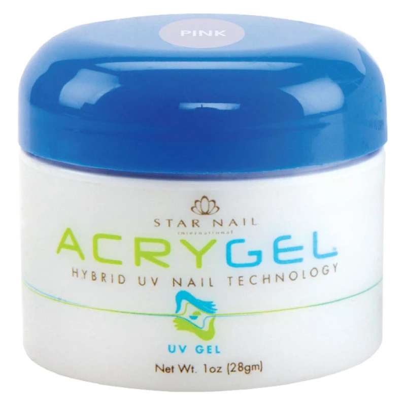 Żel różowy Star Nail AcryGel UV Gel Pink został stworzony do łączenia z pudrem różowym Star Nail AcryGel Strengthening Powder Pink, ale z powodzeniem może być stosowany również samodzielnie. Metoda AcryGel to metoda combo, która łączy dwie techniki pracy: żelową oraz akrylową. Przedłużone paznokcie są twarde jak akryl, jednocześnie zachowując elastyczność żelu.