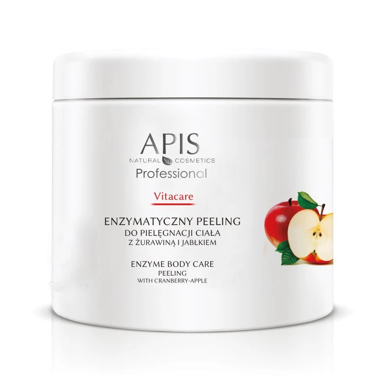 Enzymatyczny peeling z żurawiną i jabłkiem z linii Vitacare rekomendowany jest dla każdego rodzaju skóry (z wyjątkiem wrażliwej, naczyniowej, z tendencją do żylaków). Preparat łączy właściwości peelingu enzymatycznego i ziarnistego. Papaina delikatnie rozpuszcza martwą, zrogowaciałą warstwę naskórka, natomiast lawa wulkaniczna i skórki róży dokładnie ją usuwają pozostawiając skórę miękką i gładką.