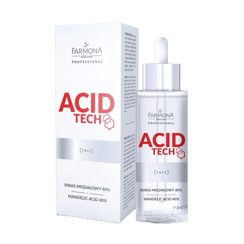 Kwas migdałowy 40% Acid Tech oczyszcza skórę, reguluje pracę gruczołów łojowych i wydzielania sebum, wygładza drobne zmarszczki, redukuje przebarwienia, uelastycznia. Polecany jest dla każdego rodzaju skóry. Może być stosowany dla skóry suchej, mieszanej, trądzikowej, tłustej, starzejącej się, z przebarwieniami, również wrażliwej.
