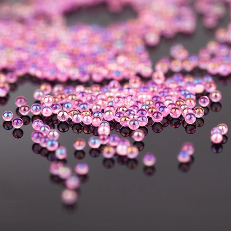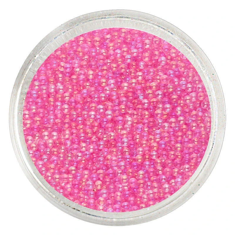 Błyszczące, drobniuteńkie, plastikowe kuleczki Pink Opal Caviar o średnicy 0,6 mm. Różowe z delikatną, multikolorową, opalizującą poświatą unicorn. Te wyjątkowo drobne kuleczki, nazywane również kawiorem, bulionem, mini perełkami, czy koralikami, są doskonałym sposobem, aby nadać biżuteryjny look płytce paznokcia.