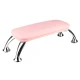 Podpórka pod rękę obita łatwym w czyszczeniu, różowym materiałem skóropodobnym, z nóżkami z chromowanej stali. Odpowiednia wysokość sprawia, że nawet długi zabieg nie jest męczący dla klientki, a stylistka nie garbi się podczas pracy, zapobiegając bólom pleców, dbając o prawidłową postawę. Wysokość i rozstaw nóżek pozwalają na umieszczenie pod nią lampy UV LED lub pochłaniacza.