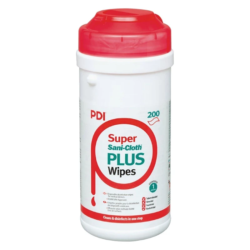 Gotowe do użycia, alkoholowe chusteczki do dezynfekcji małych powierzchni oraz sprzętu medycznego PDI SUPER Sani-Cloth ® PLUS o szerokim spektrum działania, dzięki substancji, która gwarantuje skuteczność bójczą w każdych warunkach na bakterie, wirusy bezosłonkowe i osłonkowe, grzyby i prątki. Są skuteczne wobec SARS-CoV-2, MRSA. Przeznaczone do dezynfekcji powierzchni ogólnych, urządzeń medycznych, urządzeń stomatologicznych i urządzeń kosmetologicznych. Chusteczki PDI SUPER Sani-Cloth ® PLUS to idealny produkt dezynfekujący do użytku w szybko zmieniających się środowiskach, które wymagają krótkiego czasu kontaktu i szerokiego zakresu skuteczności przeciwko chorobotwórczym mikroorganizmom. Wymiary chusteczek: 200 mm x 200 mm.