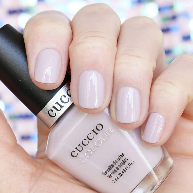 - klasyczny lakier do paznokci Cuccio Colour Take Breath Away nr 1244 13ml - lakier w kolorze kremowego fioletu. Ten subtelny odcień nada stylizacji elegancji i klasy. Szybkoschnący, o doskonałej przyczepności do płytki paznokcia. Idealny do french manicure! Lakier nie odpryskuje i nie ściera się, a odpowiednio wyprofilowany pędzelek ułatwia jego równomierne i dokładne nałożenie na płytkę;