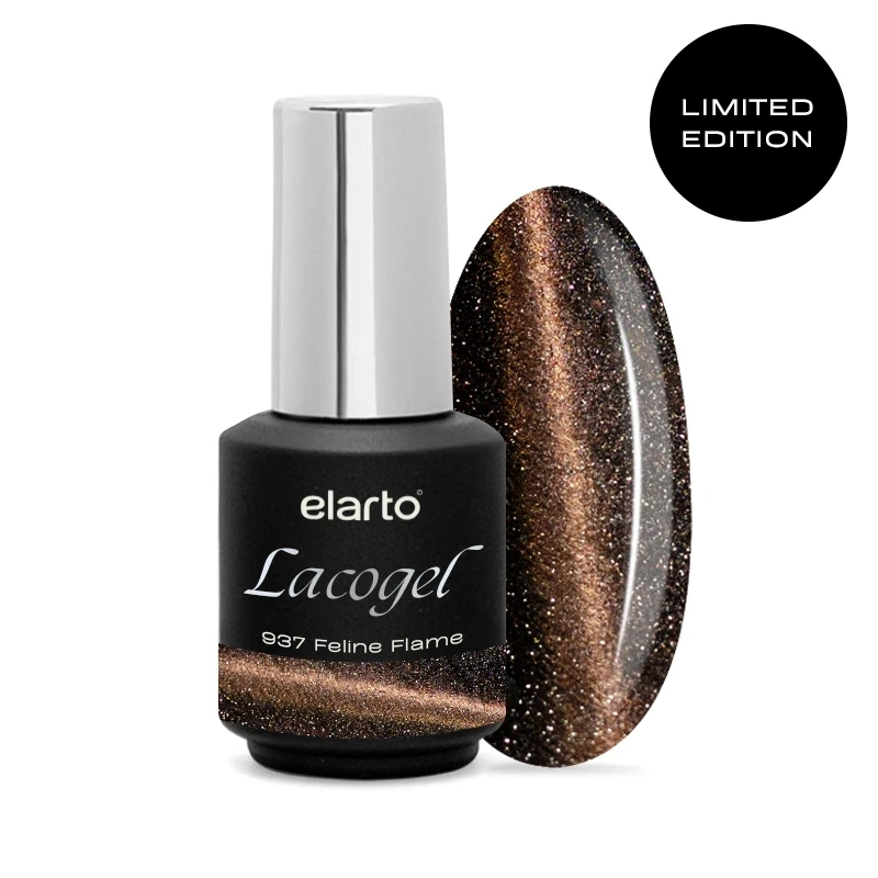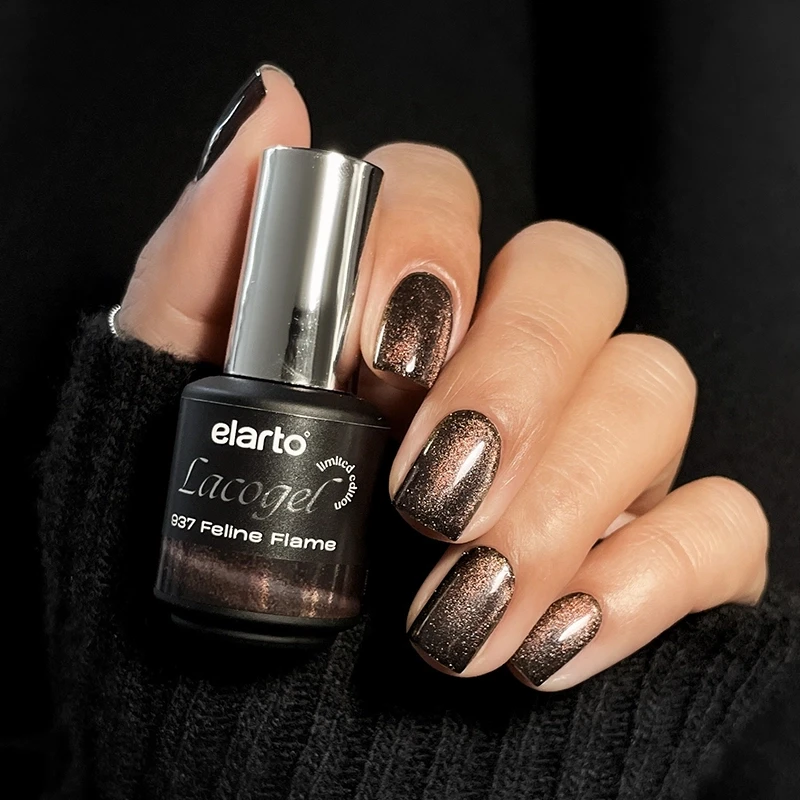 Lacogel nr 937 Feline Flame - miedziany odcień z efektem kociego oka i drobinką flash. Ten kolor to opowieść o jesiennej nocy - cichej, zmysłowej i pełnej niedopowiedzeń. Feline Flame działa jak spojrzenie kota: pewne siebie, uwodzicielskie, niemożliwe do zignorowania. Lakier o formule typu mgiełka - półtransparentny, idealny do budowania głębi koloru (edycja limitowana).