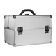 Aluminiowy, rozkładany kuferek kosmetyczny w srebrnym kolorze, ze srebrnymi okuciami. Posiada 1 dużą komorę, która pomieści lampę UV/UV LED* oraz 2 rozkładane na bok półki, idealne do przechowywania drobnych narzędzi, ozdób, czy pędzli. Możliwość zamknięcia na kluczyk. Chętnie wybierany przez stylistki paznokci, kosmetyczki, fryzjerki, stylistki rzęs oraz makijażystki. Wymiary: 32 x 25 x 25 cm.