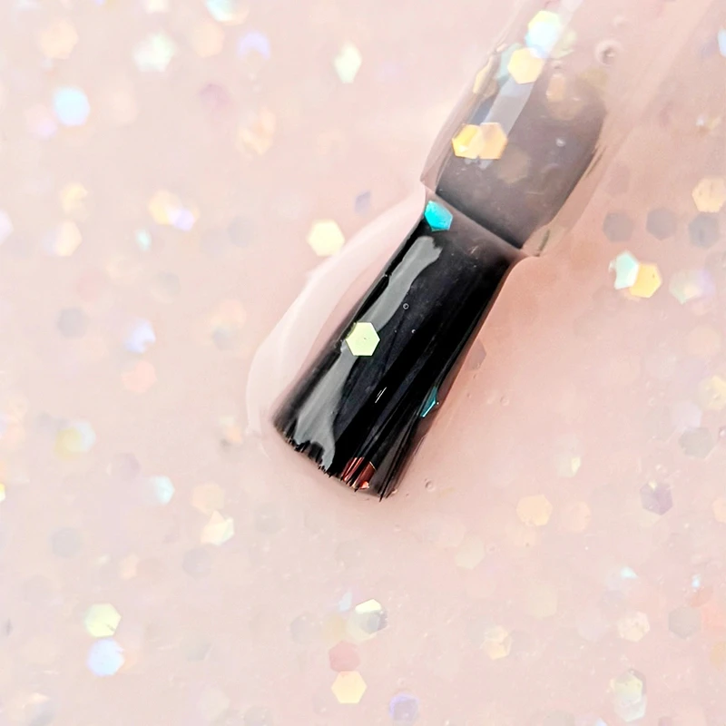 Kauczukowa baza hybrydowa Rubber Base Sparkline Peachy w brzoskwiniowo-różowym kolorze, wypełniona po brzegi opalizującymi drobinami w kształcie heksagonów. Jej średnio gęsta konsystencja sprawia, że nie spływa na skórki. Dzięki niej paznokcie staną się odporne na złamania i pęknięcia. Postaw na pełen blasku manicure, od którego nie będzie można oderwać wzroku!