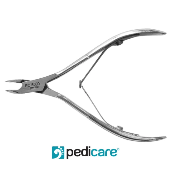 Cążki PediCare Premium PC8509 do wycinania skórek podczas manicure, zabiegów pielęgnacyjnych na dłonie, stylizacji paznokci, pedicure leczniczego, pielęgnacyjnego i SPA oraz zabiegów podologicznych. Są solidne, trwałe i ostre. Mają klasyczny kształt oraz solidną, podwójną sprężynę, która bardzo dobrze stabilizuje i amortyzuje każde ściśnięcie cążek. Pracują płynnie, nie zacinając się, gwarantując doskonałe wyczucie podczas pracy. Ich wysoka jakość i staranność wykonania, zapewniają długie i wygodne użytkowanie.