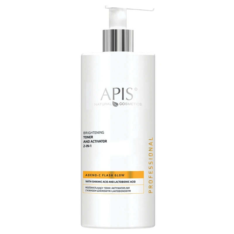 Rozświetlający tonik i aktywator 2w1 z kwasem szikimowym i laktobionowym Adeno-C Flash Glow marki Apis to wielozadaniowy preparat stworzony z myślą o cerze zmęczonej, poszarzałej i wymagającej odnowy. Łączy funkcję toniku i aktywatora zabiegowego – odświeża, nawilża i wygładza skórę, jednocześnie delikatnie ją złuszczając i przygotowując na przyjęcie składników aktywnych z kolejnych etapów pielęgnacji. Idealnie sprawdza się również jako aktywator enzymatycznego peelingu w proszku z witaminą C z tej samej linii.