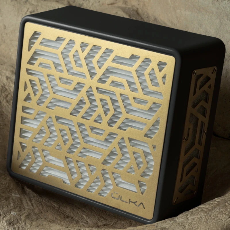 Pochłaniacz pyłu Ülka Premium w eleganckim czarnym kolorze ze złotymi kratkami, przeznaczony do postawienia na biurku. Wydajny, ma bardzo dużą moc wchłaniania pyłu, regulowaną na 2 poziomach. Generuje niski poziom hałasu (do 55 dB). Polecany do codziennej, wielogodzinnej pracy. Filtr HEPA skutecznie usuwa 99,9% cząstek o wielkości do 0,3 mikrometra, nie rozdmuchując kurzu na zewnątrz. Moc 52W.