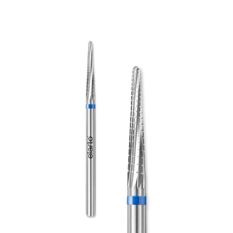 Frez elarto No40 z węglika wolframu w kształcie długiego, wąskiego stożka ma część roboczą o średnicy 2,3mm i długości 14,5mm. Charakteryzuje się średnią gradacją o gęstych, drobnych nacięciach. Idealny do pracy z masą żelową i hybrydową, modelowania i obróbki przedłużonych paznokci, frezowania naturalnego paznokcia od spodu, opracowania okolicy skórek i tunelu po przedłużaniu na dual formach.