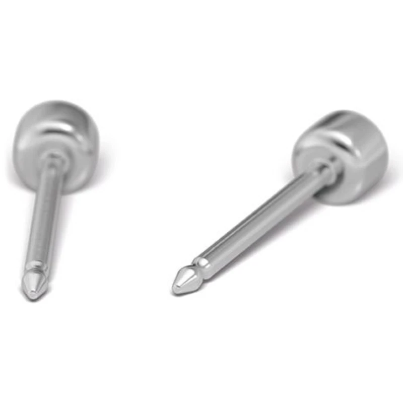 Kolczyki do przekłuwania uszu Studex M200W z serii System Plus. Srebrne, tradycyjne kulki. Rozmiar M (mini), średnica główki kolczyka ok. 3mm, długość igły kolczyka 9,7mm. Wykonane z najlepszej jakości nieprzetworzonej stali chirurgicznej. W opakowaniu: kolczyki, zapinki, nakładki umożliwiające umieszczenie kolczyka w pistolecie.