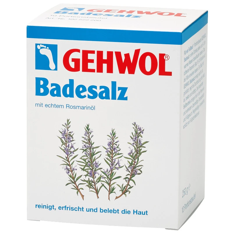 Sól do kąpieli stóp z rozmarynem GEHWOL Badesalz dedykowana jest dla każdego rodzaju skóry, a w szczególności dla skóry suchej. Polecana nie tylko do kąpieli stóp, ale również całego ciała. Odpowiednia dla diabetyków. Produkt wegański.