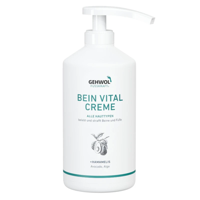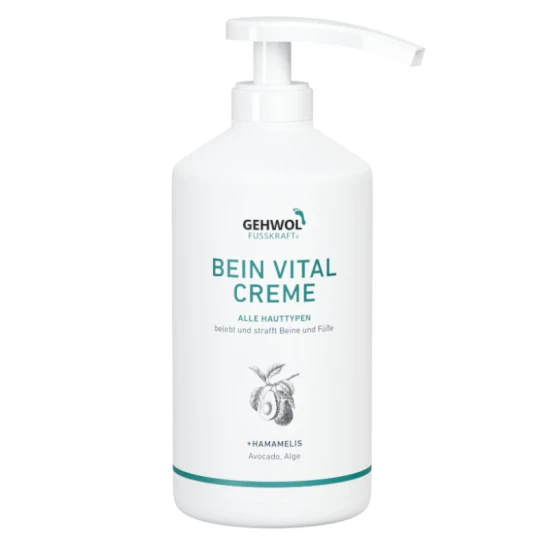 Krem GEHWOL FUSSKRAFT® Bein Vital Creme został opracowany z myślą o pielęgnacji zmęczonych stóp i nóg. Dzięki zawartości oleju z awokado i ekstraktów z alg poprawia mikrokrążenie i regeneruje skórę narażoną na codzienne przeciążenia, przywracając jej lekkość. Ekstrakt z oczaru wirginijskiego (hamamelis) i bisabolol łagodzą podrażnienia, działają kojąco i wspomagają ujędrnienie. Alantoina pomaga złagodzić podrażnienia, zmiękcza szorstką skórę i wspiera jej regenerację – bez obciążania czy tłustego filmu. Witamina E (w stabilnej formie octanu) chroni komórki przed stresem oksydacyjnym i wspiera regenerację skóry. Dodatkowo, obecność naturalnego farnesolu wspiera świeżość formuły i pomaga utrzymać równowagę mikrobiologiczną skóry. Krem dostępny w dużym, ekonomicznym opakowaniu z wygodną i higieniczną w użyciu pompką. Szybko się wchłania, nie pozostawia tłustej warstwy, a jednocześnie zapewnia długotrwałe nawilżenie. Wskazany dla diabetyków.