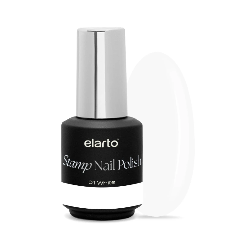 Lakier do stempli elarto Stamp Nail Polish 01 White to klasyka w czystej, intensywnie napigmentowanej postaci – niezastąpiona w świecie stemplowego minimalizmu i kontrastowego szaleństwa. Sprawdź jego najważniejsze cechy: