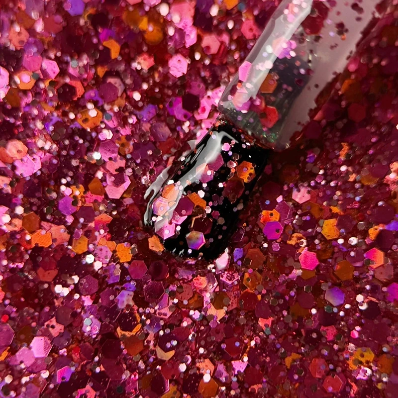 Brokatowy lakier hybrydowy Lacogel nr 847 All about You to kwintesencja szyku z dodatkiem niesamowitego blasku. Cudowny odcień różu z migoczącymi czerwono-różowymi drobinami to idealny wybór dla tych, którzy pragną wyrazić swoją osobowość i unikalny styl poprzez piękno paznokci. Ta wyjątkowa kompozycja sprawi, że manicure stanie się hipnotyzującą wizytówką, która zdecydowanie przyciąga spojrzenia.