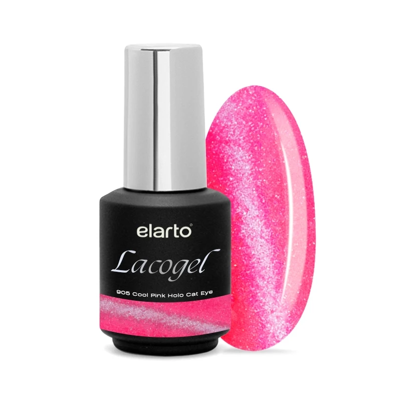 Lakier hybrydowy Lacogel nr 905 Cool Pink Holo Cat Eye zachwyca intensywnie różowym odcieniem z multikolorowymi drobinkami. Przyciąga spojrzenia, tworząc na paznokciach hipnotyzujący efekt. Ten wyjątkowy kolor to idealny wybór dla miłośniczek wyrazistych stylizacji. Formuła cat eye sprawia, że efekt na paznokciach zmienia się w zależności od kąta padania światła, zapewniając niepowtarzalny wygląd.