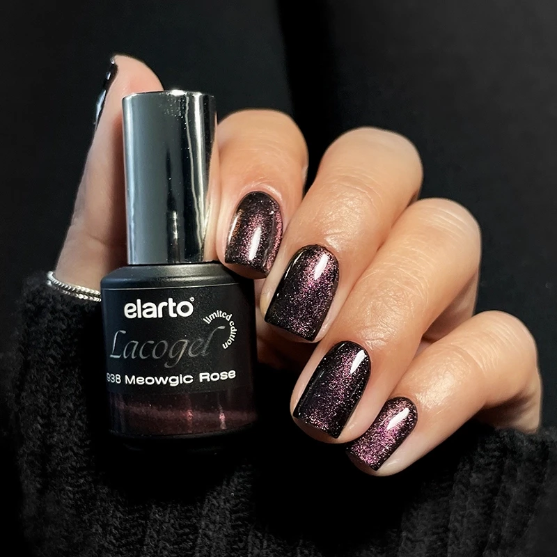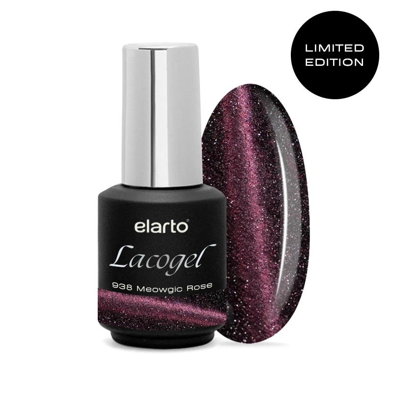 Lacogel nr 938 Meowgic Rose - burgund z nutą magii. Intensywny, głęboki odcień oczarowuje różową smugą cat eye i połyskującą drobinką flash, tworząc efekt pełen tajemnicy i kobiecego uroku. Formuła typu mgiełka pozwala budować głębię koloru i nadać stylizacji hipnotyzujący charakter. Elegancki, magiczny, niepowtarzalny i… LIMITOWANY!