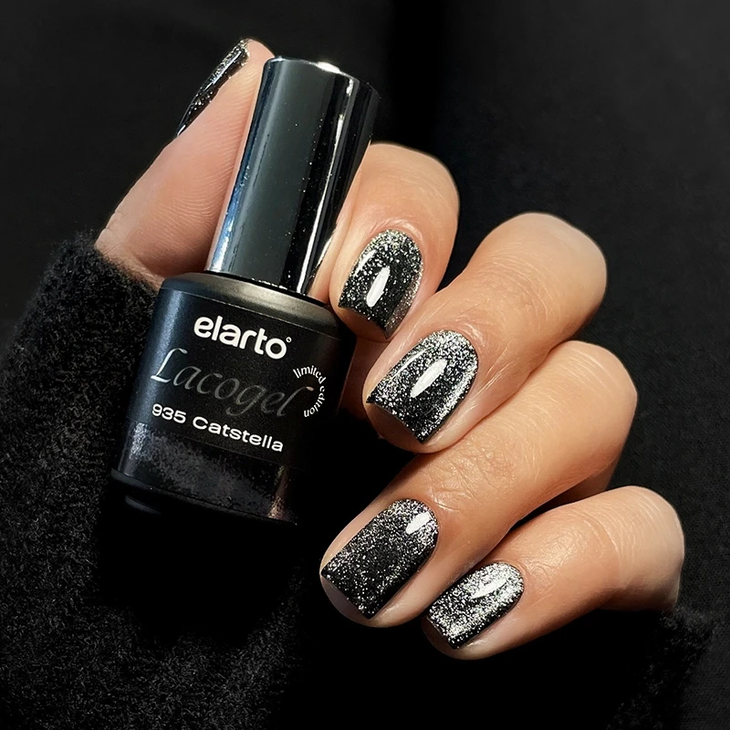 Lacogel nr 935 Catstella to srebrzysty odcień z efektem kociego oka i drobinką flash, który lśni niczym gwiezdny pył. Lakier o formule typu mgiełka - półtransparentny, idealny do budowania głębi koloru. Kosmicznie elegancki i pełen tajemniczego blasku - na wieczór, imprezę lub jako nieoczywisty akcent w klasycznym manicure. Limitowana edycja, która przyciąga spojrzenia jak magnes!