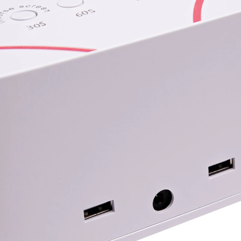 Biała lampa UV LED Ülka Lümos o mocy 30W z wbudowanym akumulatorem. Działa bezprzewodowo do 7 godzin. Emituje różowe światło o długościach fali 365 i 405nm. Ma czujnik ruchu, wyświetlacz i timer 30, 60, 99 s. Utwardza produkty z fotoinicjatorami UV i UV LED. Ergonomiczny kształt zapewnia komfort pracy, a odpinane dno ułatwia czyszczenie. Dwa porty USB pozwalają ładować np. telefon w trakcie pracy.