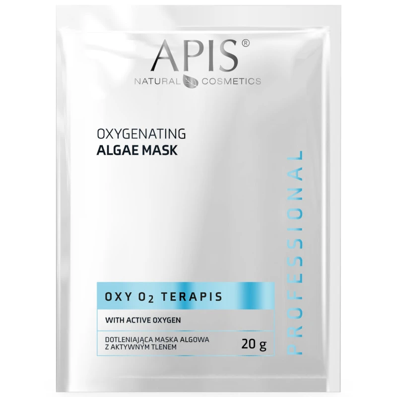 Algowa maseczka do twarzy zawiera innowacyjne połączenie składników intensywnie dotleniających, pobudzających receptory skóry. Aktywny tlen zwiększa natychmiastowy dostęp tlenu w skórze poprawiając poziom energii komórkowej niezbędnej do prawidłowych przemian metabolicznych. Sepitonic M3 będący kombinacją minerałów i koenzym Q10 usprawniają oddychanie komórkowe. Wzbogacona kwasem hialuronowym i ekstraktem z żeń-szenia głęboko nawilża, wygładza naskórek oraz redukuje zmarszczki wspomagając odnowę komórkową. Wysoka skuteczność selektywnie dobranych składników sprawia, że skóra odzyskuje naturalne piękno, świeżość, blask i witalność. Dotleniająca maska algowa z aktywnym tlenem Apis z linii OXY O2 TERAPIS przeznaczony jest dla cery szarej, zmęczonej, pozbawionej energii i blasku. Saszetka wystarcza na wykonanie jednej maseczki algowej.