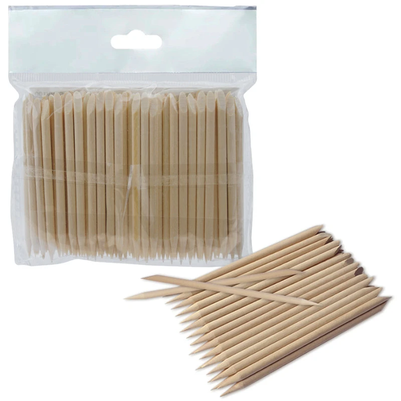 Drewniane patyczki o długości 11,5 cm zakończone na dwa różne sposoby. Skośna końcówka doskonale zastąpi metalowe narzędzie do odsuwania skórek podczas zabiegów manicure, pedicure i stylizacji paznokci. Ostra końcówka patyczka tzw. szpic idealnie sprawdzi się podczas wszelkiego rodzaju zdobień, nakładania ozdób, mieszania żeli i lakierów na płytce.