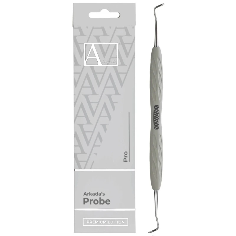 Precyzyjna, dwustronna sonda podologiczna Arkada’s Probe przeznaczona do pracy w obrębie wału paznokciowego. Zakończona kierunkowo po obu stronach, co umożliwia komfortową pracę zarówno prawą, jak i lewą ręką. Ma rękojeść pokrytą hipoalergicznym silikonem, co gwarantuje pewny chwyt podczas użytkowania. Sondę można bezpiecznie dezynfekować i sterylizować. Całkowita długość narzędzia: 16,5cm.