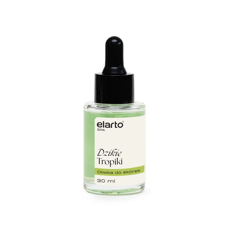 Oliwka elarto Dzikie Tropiki przeznaczona jest do pielęgnacji skórek i paznokci. Ma świeży, a zarazem kusząco słodki zapach, pełen energii lata. Soczysty, tropikalny ananas łączy się z orzeźwiającymi nutami mango i marakui, tworząc prawdziwie owocową eksplozję. Subtelny akcent kwiatów ylang-ylang nadaje kompozycji egzotycznej głębi i lekkości. Produkt zamknięty jest w szklanej buteleczce z pipetą. Zakraplacz kosmetyczny umożliwia higieniczną i niezwykle precyzyjną aplikację odpowiedniej ilości preparatu. Wewnątrz szyjki butelki znajduje się reduktor – specjalna wkładka, która zbiera nadmiar oliwki z pipety, dodatkowo chroni płyn przed nadmiernym kontaktem z powietrzem oraz zabezpiecza przed przypadkowym wylaniem np. przy przechyleniu.