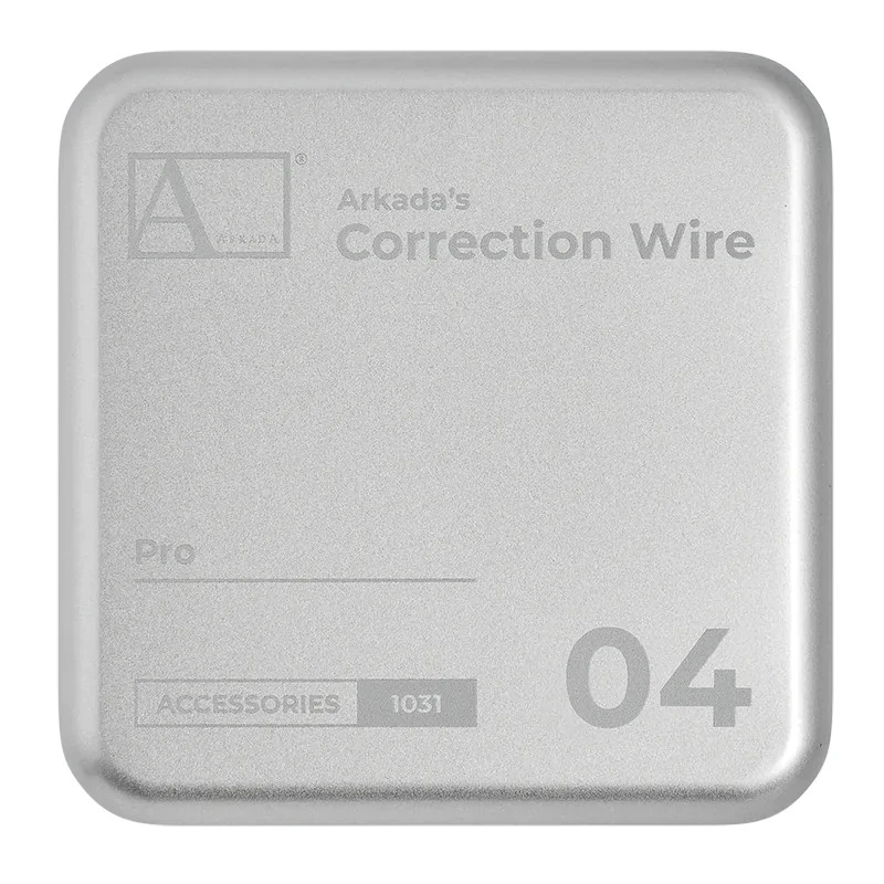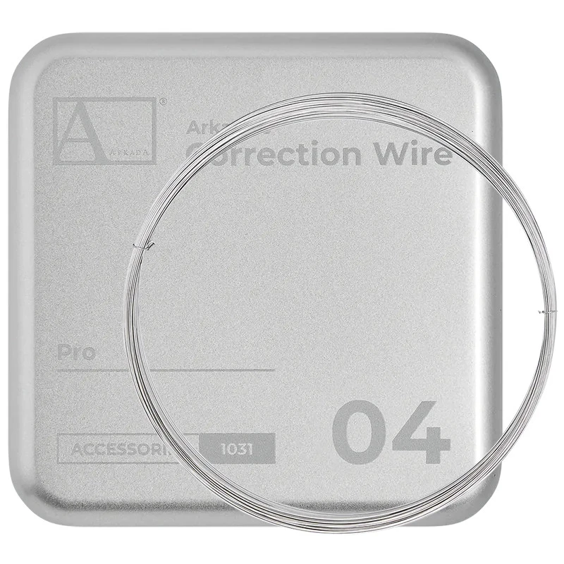 Drut korekcyjny Correction Wire 04 wykonany ze stali chirurgicznej implantacyjnej, przeznaczony do samodzielnego formowania klamry M z zastosowaniem narzędzia Arkada's Brace M lmarki Aarkada. Cechy produktu: