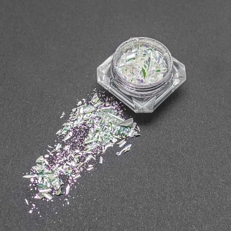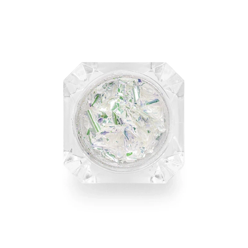 Płatki do zdobienia paznokci elarto Opal Flakes Fairy Dust tworzą zjawiskowo błyszczące, półtransparentne drobinki o nieregularnych kształtach i różnych wielkościach, mieniące się bogactwem barw, z refleksami będącymi kombinacją zieleni, odrobiny fioletu i sporej ilości srebra. Ich wielowymiarowa forma pozwala na wszechstronne zastosowanie – płatki są idealne do tworzenia tajemniczych stylizacji i wielobarwnych, modnych zdobień. Nadają niepowtarzalnego, migoczącego blasku. Możesz ich użyć do codziennych, salonowych stylizacji oraz do tworzenia zdobień z efektem Princess Nails. Doskonale sprawdzą się we frenchu konstrukcyjnym w stylu Fantasy French i 3D oraz do zdobień ślubnych Wedding Nail Art.