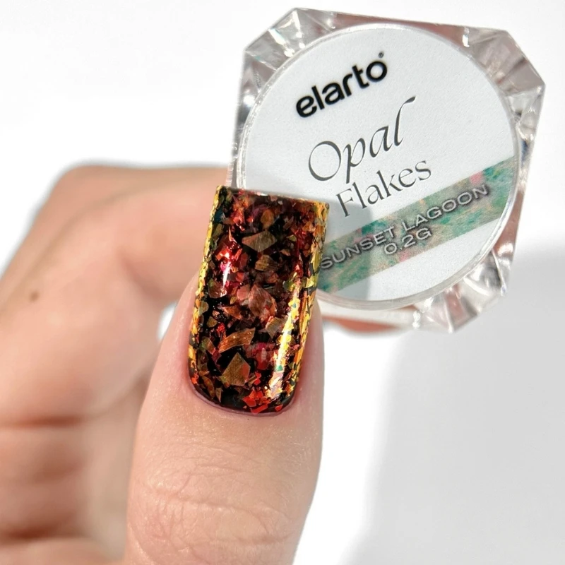 - Marzy Ci się spersonalizowany żel z drobinką? Wymieszaj płatki elarto Opal Flakes Sunset Lagoon z ulubionym bezbarwnym żelem budującym np. żelem elarto Candy Gel Clear, uzyskując produkt indywidualnie dopasowany do Twoich potrzeb :)