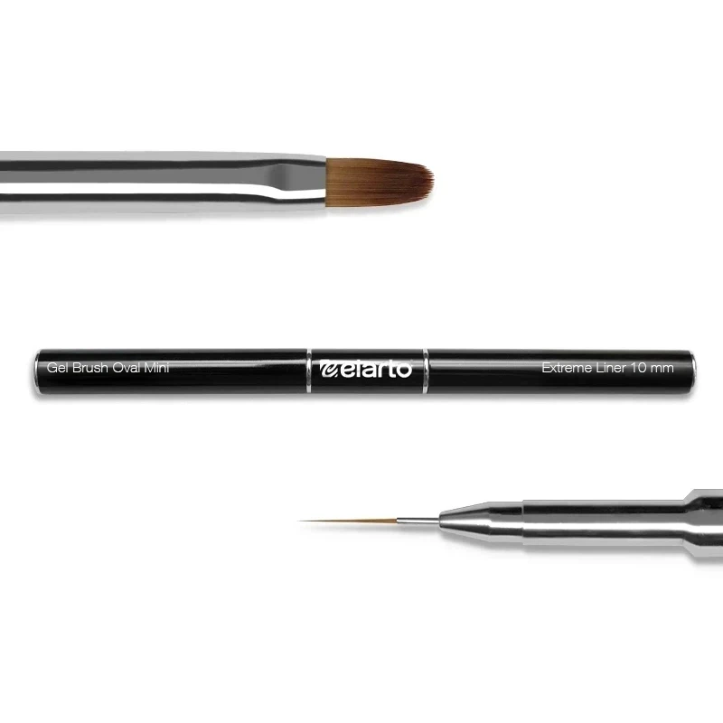 Dwustronny pędzel z metalową rączką elarto Gel Brush Oval Mini & Extreme Liner 10mm do aplikacji żelu i wykonywania zdobień