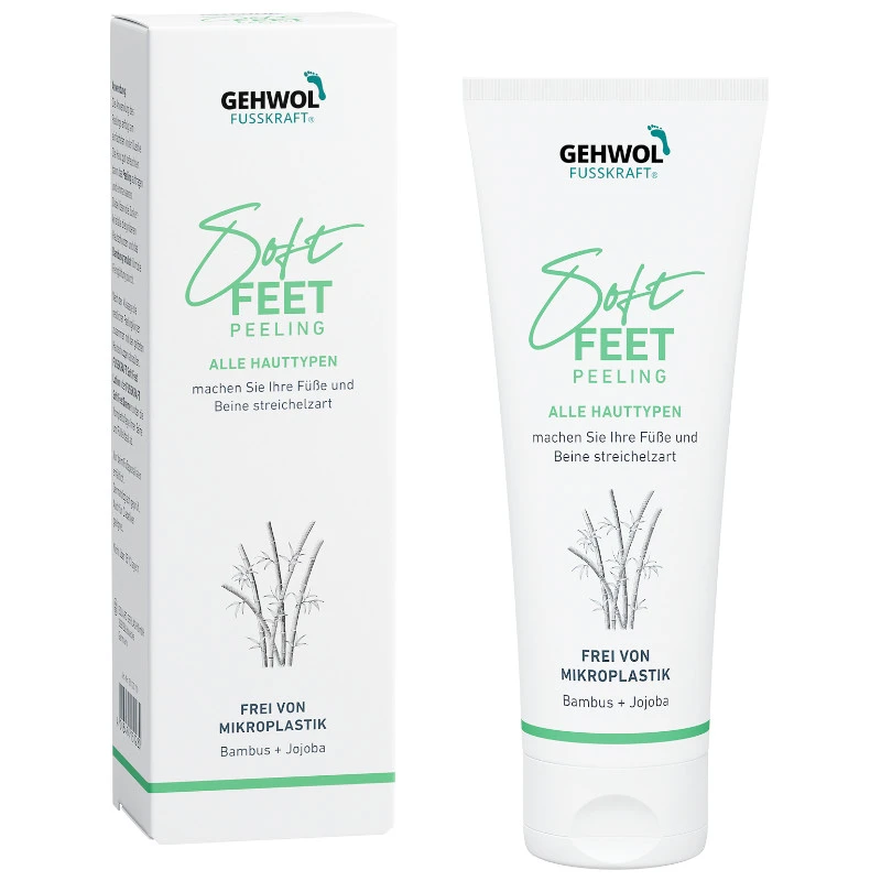 Peeling do stóp GEHWOL FUSSKRAFT® Soft Feet Peeling delikatnie, a zarazem dokładnie i skutecznie usuwa martwe komórki naskórka, wygładzając skórę stóp. Naturalne granulki bambusa oraz wosk jojoba zapewniają łagodny masaż, pobudzając krążenie krwi w skórze. Kryształki cukru ułatwiają szybkie usunięcie martwych komórek naskórka. Olej z awokado i ekstrakt z miodu dostarczają skórze cennych substancji pielęgnujących, podczas gdy witamina E chroni skórę i zapobiega jej przedwczesnemu starzeniu się. Peeling do stóp GEHWOL FUSSKRAFT® Soft Feet Peeling poprawia mikrokrążenie i przygotowuje skórę do dalszej pielęgnacji, ułatwiając wchłanianie składników aktywnych.