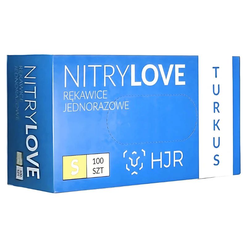 Nitrylowe, bezpudrowe rękawiczki ochronne NitryLOVE HJR w rozmiarze S i niebieskim kolorze. Jednorazowe, niesterylne. Miękkie, elastyczne, wytrzymałe na rozciąganie. Chronią przed niepożądanymi i niebezpiecznymi substancjami. Rolowany mankiet ułatwia zakładanie i zdejmowanie, zapobiega odwijaniu się. Uniwersalny kształt sprawia, że pasują na lewą i prawą dłoń.