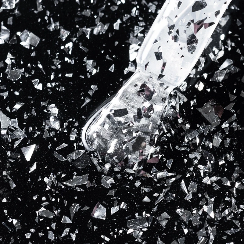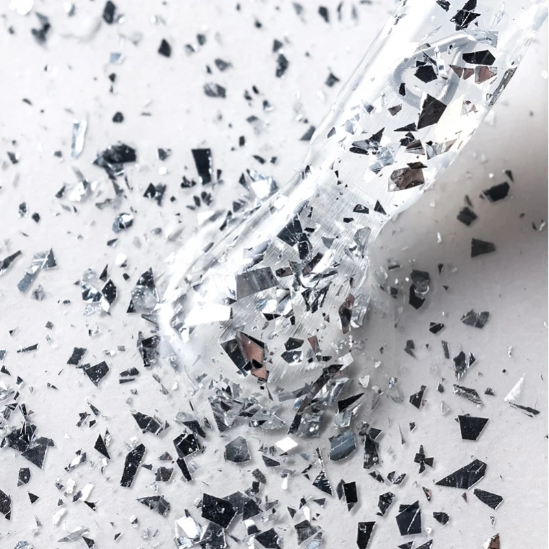 Top hybrydowy elarto Party Top Silver Crush to produkt, który doda Twojej stylizacji trójwymiarowego wykończenia i sprawi, że chętnie będziesz do niego wracać. Srebrne drobiny pozostawiają na paznokciu efekt pełen blasku!