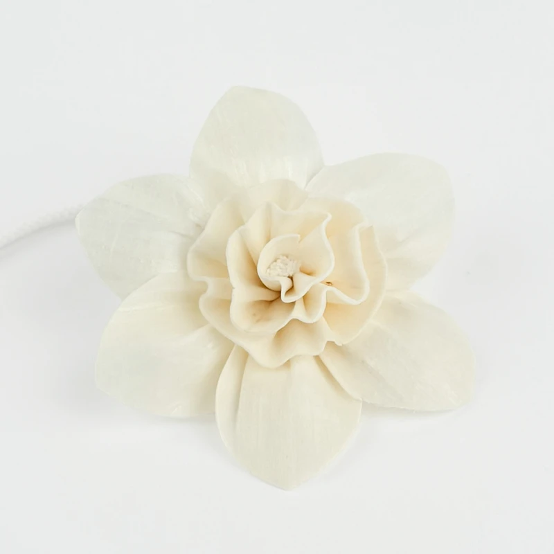 Dekoracyjny Kwiat Lilii z naturalnej skrobi manioku to alternatywa dla patyczków w dyfuzorach zapachowych. Zawieszony na 12cm bawełnianym sznurku, który wchłania aromat i przekazuje go do kwiatu, zapewnia równomierne i długotrwałe uwalnianie zapachu. Lekka, porowata struktura materiału sprawia, że kwiat o wysokości 2,5cm i średnicy 8cm jest delikatny w dotyku, trwały i odporny na odkształcenia.