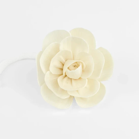 Dekoracyjny Kwiat Róży z naturalnej skrobi manioku to alternatywa dla patyczków w dyfuzorach zapachowych. Zawieszony na 12cm bawełnianym sznurku, który wchłania aromat i przekazuje go do kwiatu, zapewnia równomierne i długotrwałe uwalnianie zapachu. Lekka, porowata struktura materiału sprawia, że kwiat o wysokości 4cm i średnicy 5,5cm jest delikatny w...